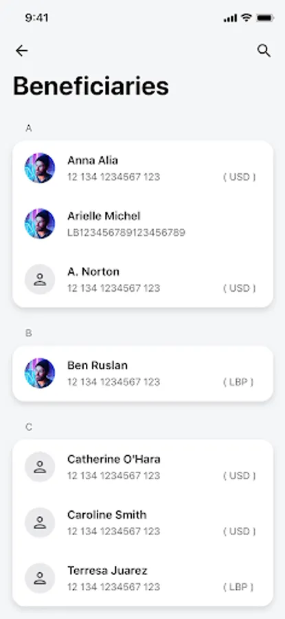 • Set a nickname for your account so that you can find it easily in account list and transfers