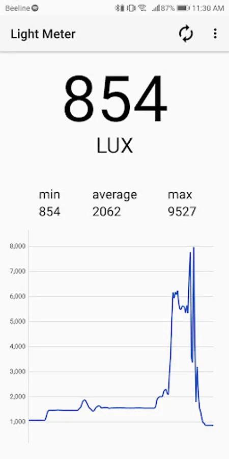 2. Shows the minimum, maximum and average lux values.