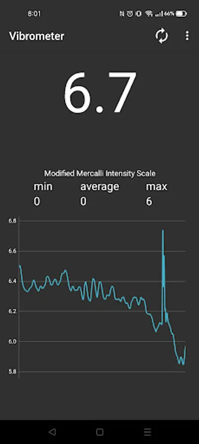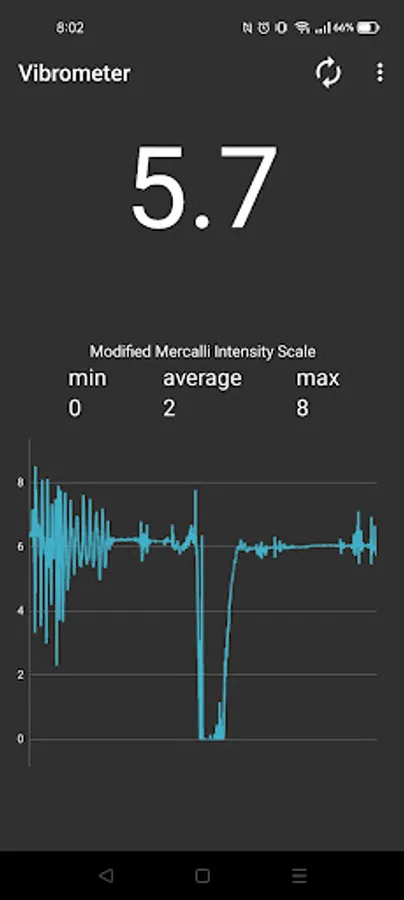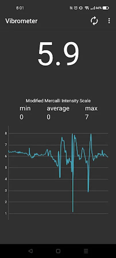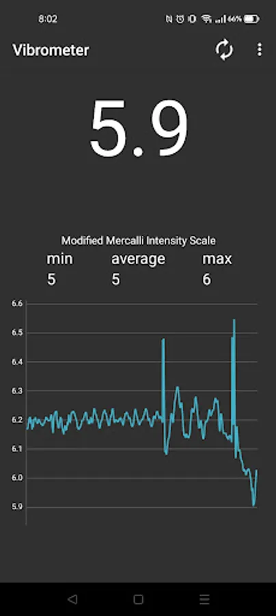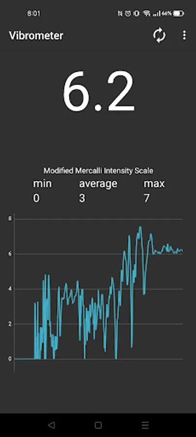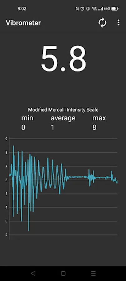 This vibrometer app uses the Modified Mercalli Intensity Scale to show vibration levels.