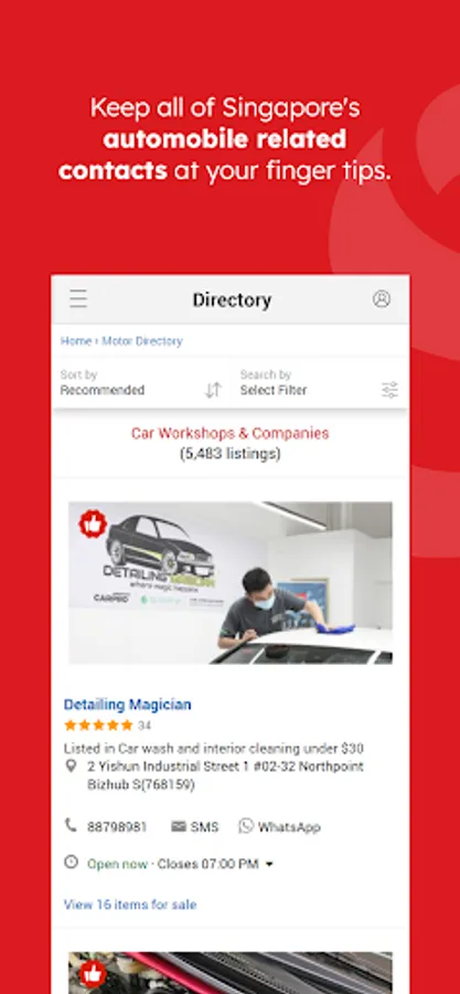 4. Motor Directory - Designed with the objective of being a one-stop car-related merchant directory for users, this section contains listings of motoring-related merchants from over 42 categories. Of which, full contact details as well as their products and services are made easily accessible.
