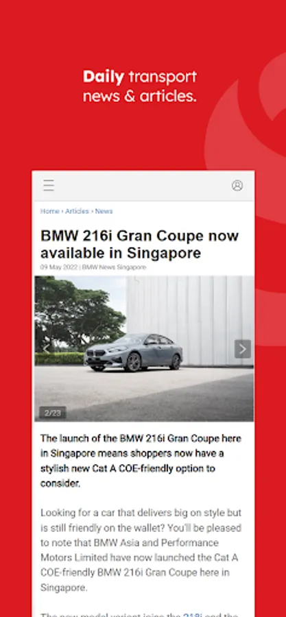 3. Articles - This section aims to provide value-added services for users to make a more informed and intelligent buying decision. The inclusion of key features such as updated automotive global news, carpark rates for all major zones in Singapore and updated COE results allows users as well as car buyers and owners to gain useful information. Furthermore, our editorial team provides car reviews of the latest and most popular cars in the market to allow users to have a better understanding of the cars.