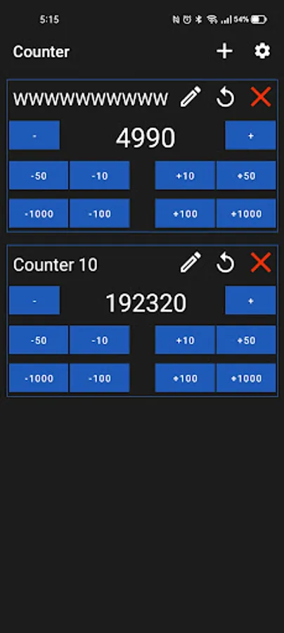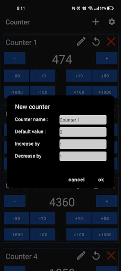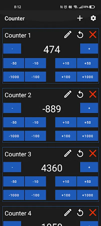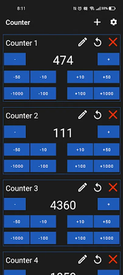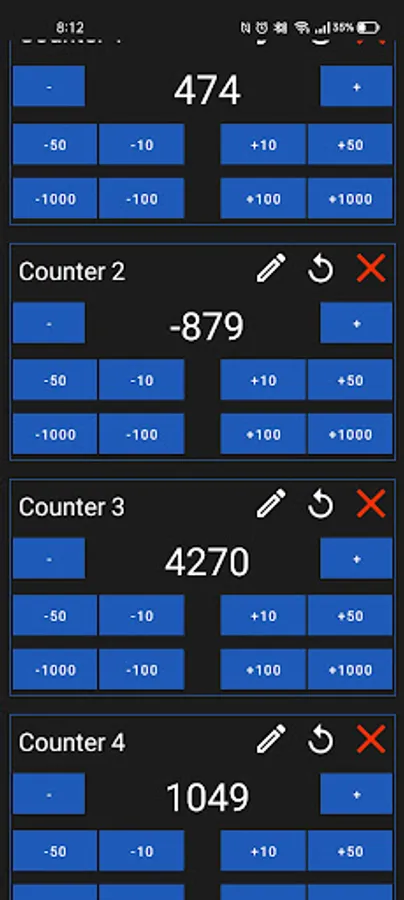 3. Custom actions (for ex. +10, +50, +100, +1000 etc.).
