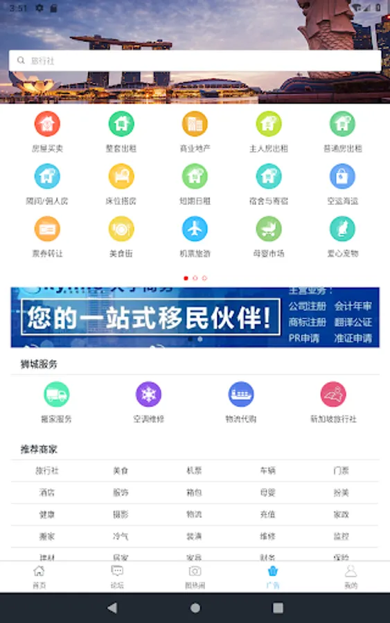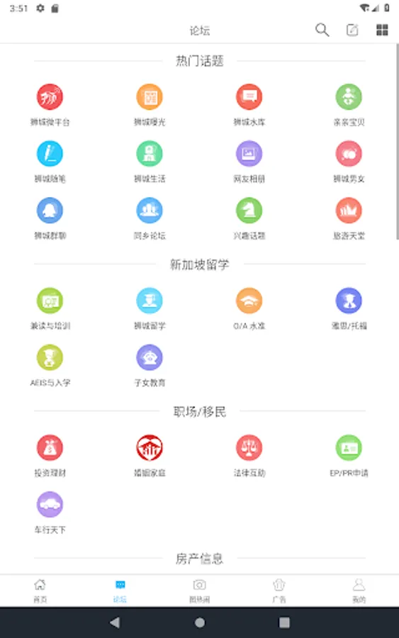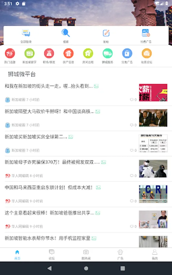 Founded in Singapore in 2001, with over one million registered users, free publishing and search advertising content, sharing Singapore Life and Lion City Life Encyclopedia, the Lion City Forum APP perfectly implements the web-side function, the main contents are as follows: