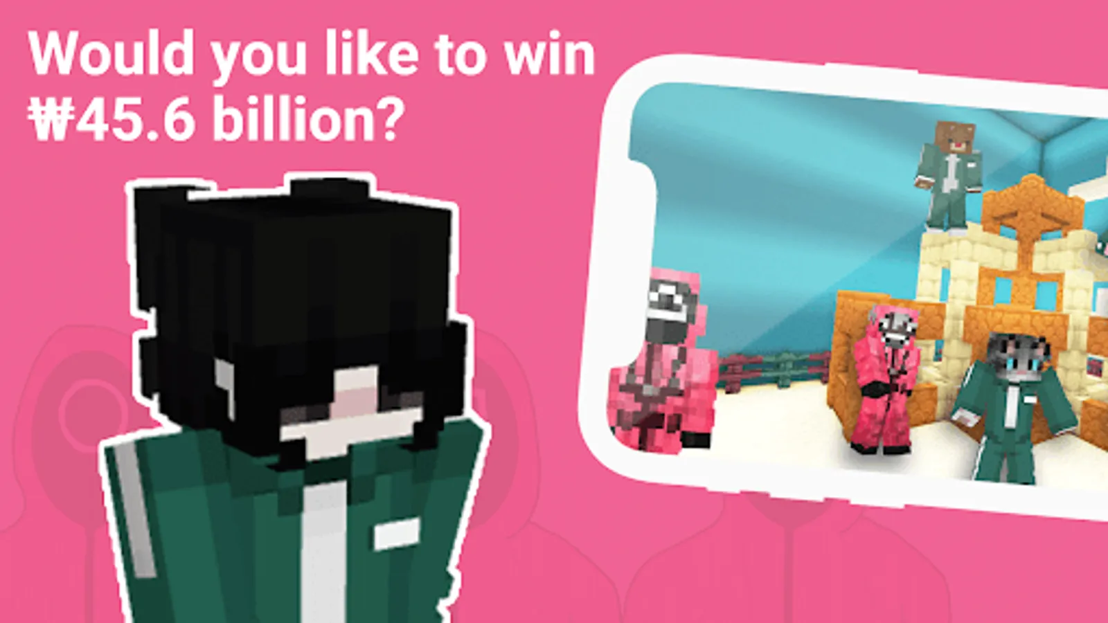 Mod Squid Game Skins For Minecraft PE is exactly the addon that you have been missing in the MCPE world of Bedrock for so long. Choose the main prize with your friends, and fight for it, in the Minecraft Squids Game Skin mod in survive mode.