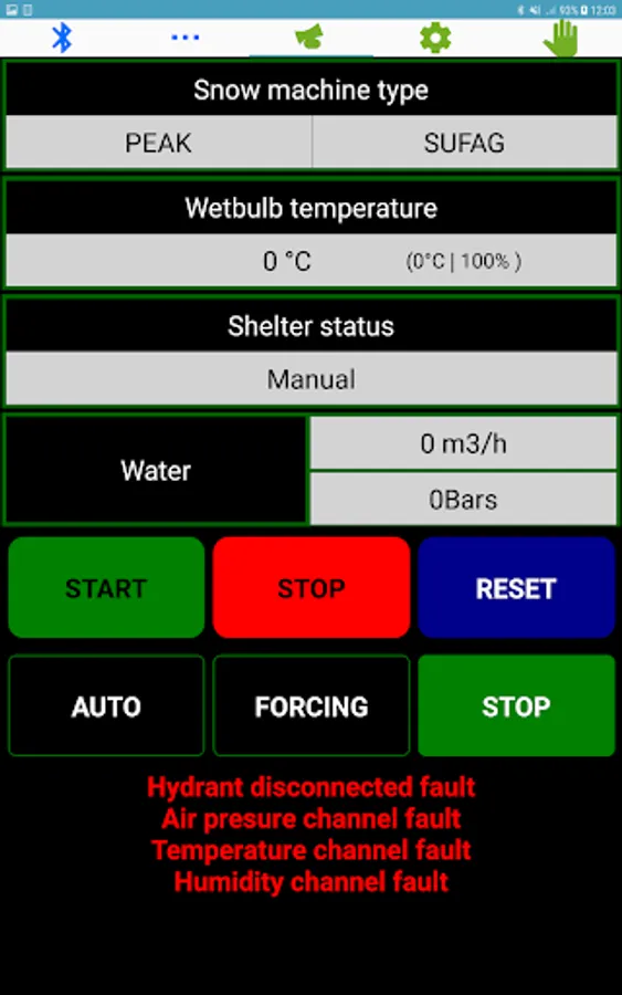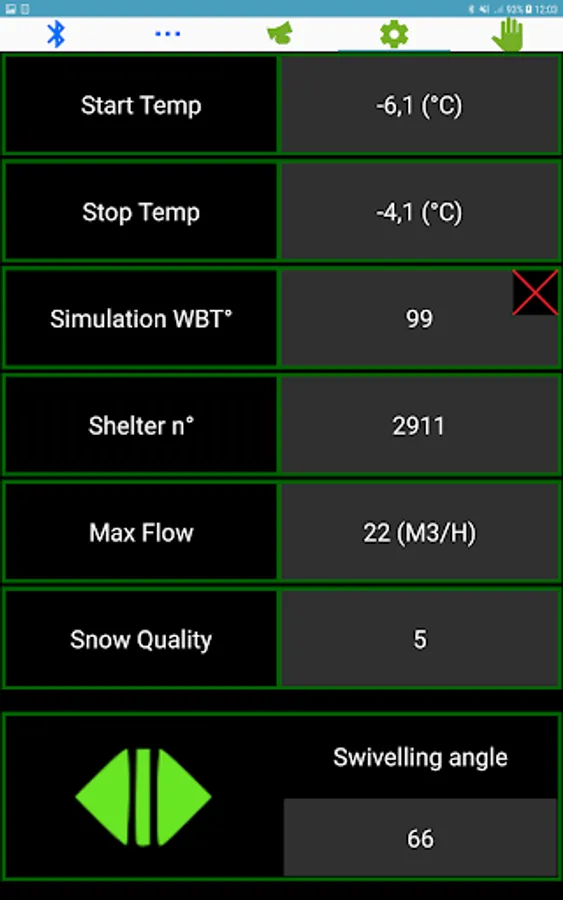Mobile app working like a remote controll for basic parameter of a snowmaker with SGC400 PLC , working with bluetooth (15m range)