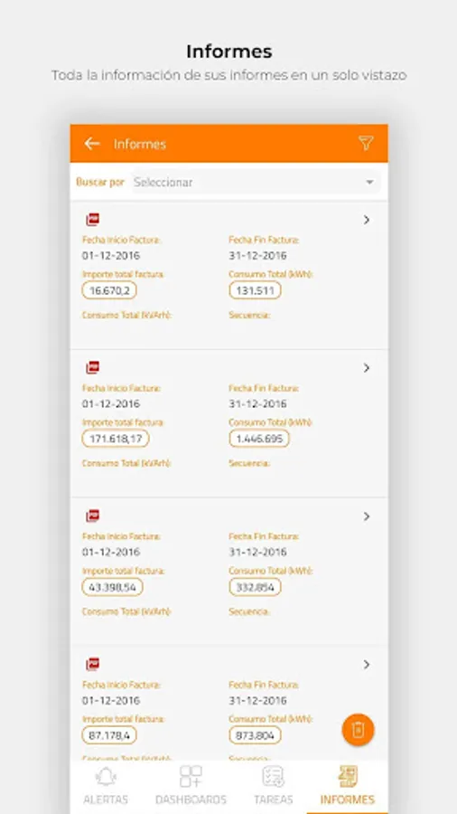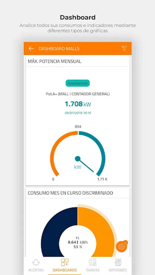It permits to create a control panel in this app, selecting the main gadgets previously configured in the desktop application (consumptions, costs, indicators, predictives, etc.)