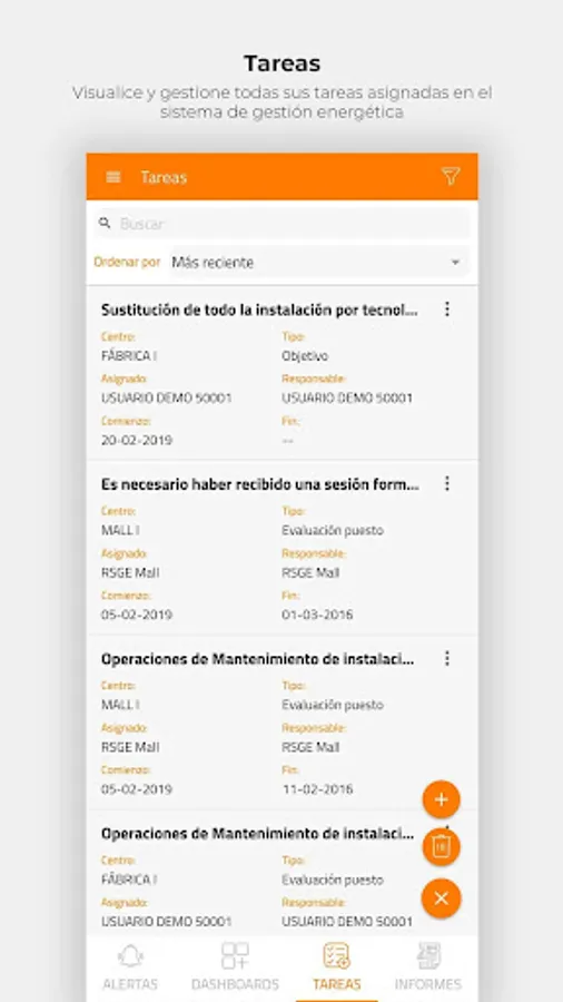 Convert the app into an energy management control center, simplifying operations and maintenance management and doing them more efficient. The app permits to access to all the incomplete tasks, create new requirements and monitor all the actions, improving the organization collaboration.