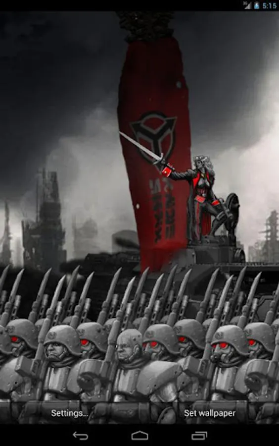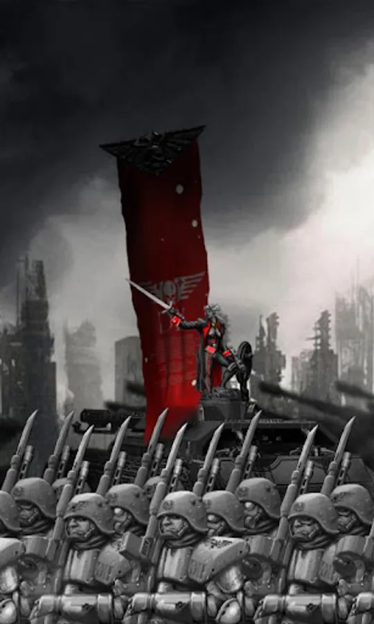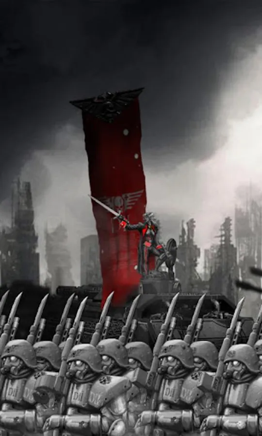 Imperial Guard marching on the screen. Imperial guard can be changed to Helghast warriors (killzone) in setting as an option. Live Wallpaper.