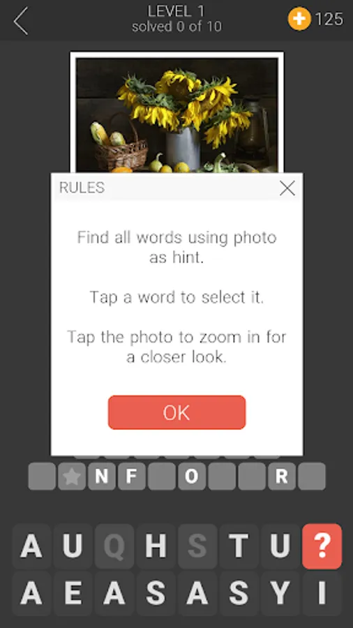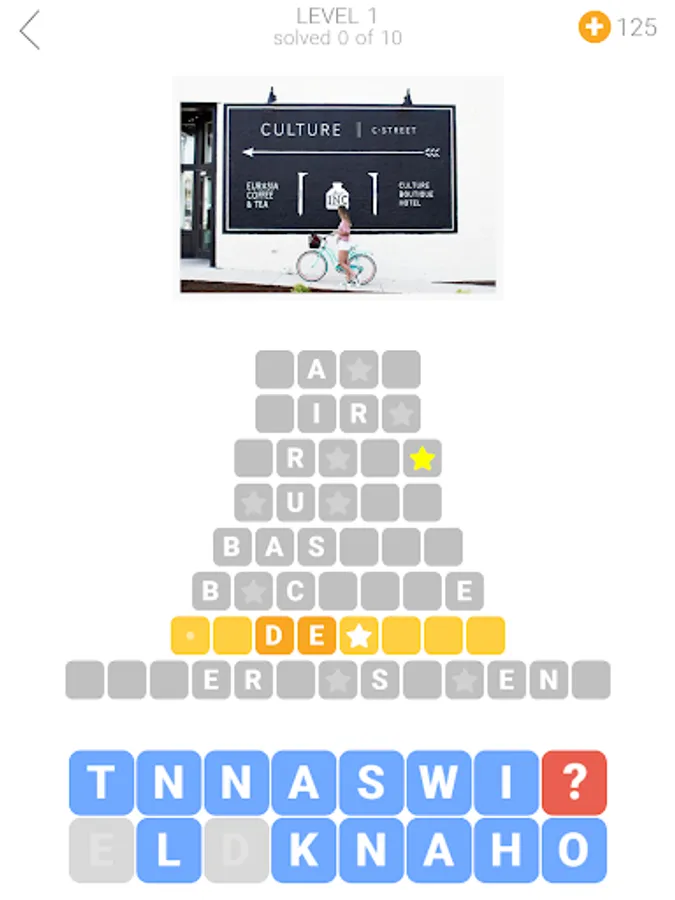 You need to find all the words in the list using the image as a clue. Tap the word and use some of the given letters to decipher the word. Also, some words have bonus tiles that will help you reveal letters in the other words of the puzzle. When all the words are found, the next level will be unlocked for more fun! Seat down with a nice sangria and your friends and try to find all the words while looking at amazing pictures!