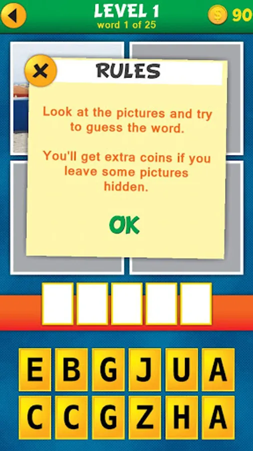 This addictive word puzzle game comes with a twist: the pictures are revealed one by one. Guess the word with less pics open and earn extra coins!