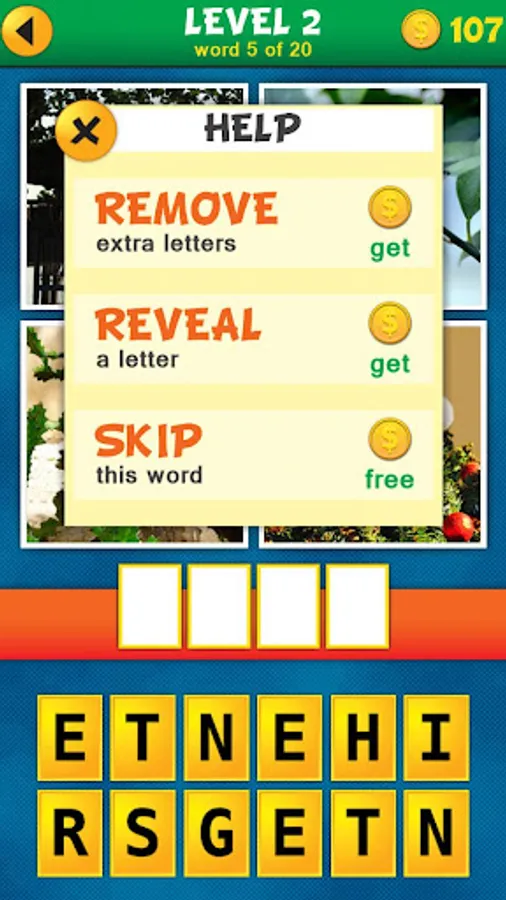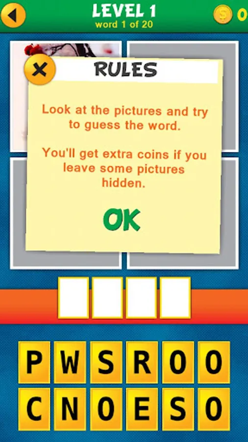 • The pictures are revealed one by one. Guess the word with less pics and earn extra coins!