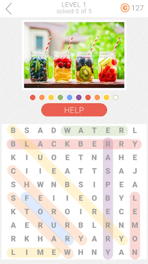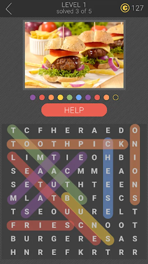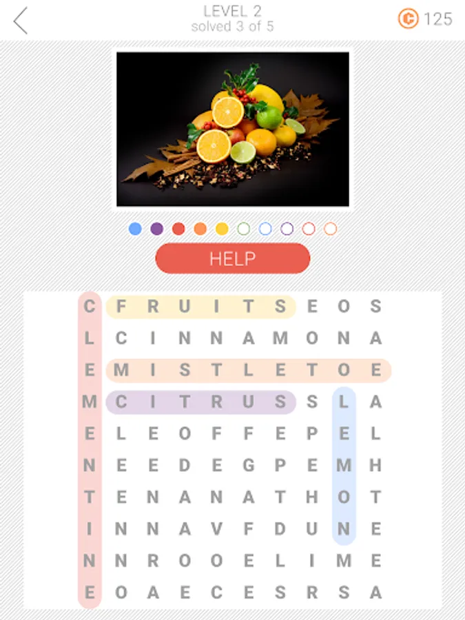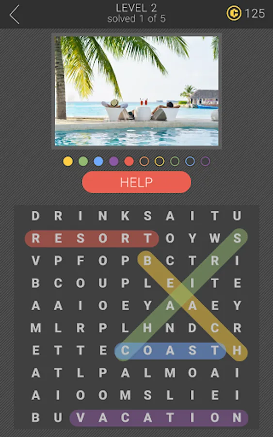Take a look at the photo, then start searching for the words. You can tap the picture to zoom in for a closer look. Slide your finger through the letter grid to make the word. Use the help button if you get stuck.