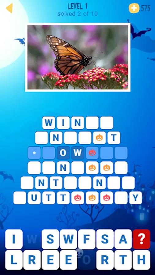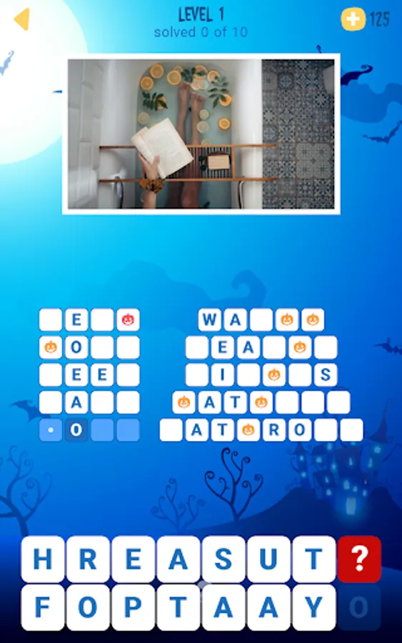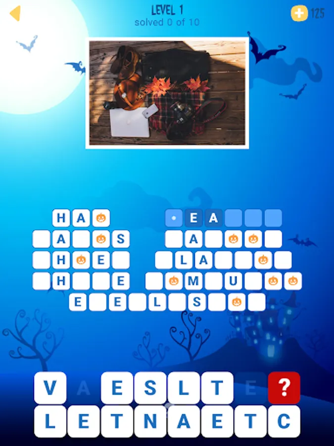 You need to find all the words in the list using the image as a clue. Tap the word and use some of the given letters to decipher the word. Also, some words have bonus tiles that will help you reveal letters in the other words of the puzzle. When all the words are found, the next level will be unlocked for more fun! Have fun this Halloween and try to find all the words while looking at amazing pictures!