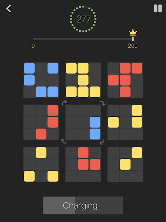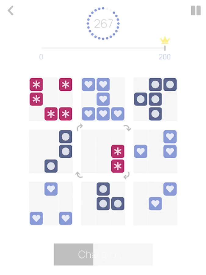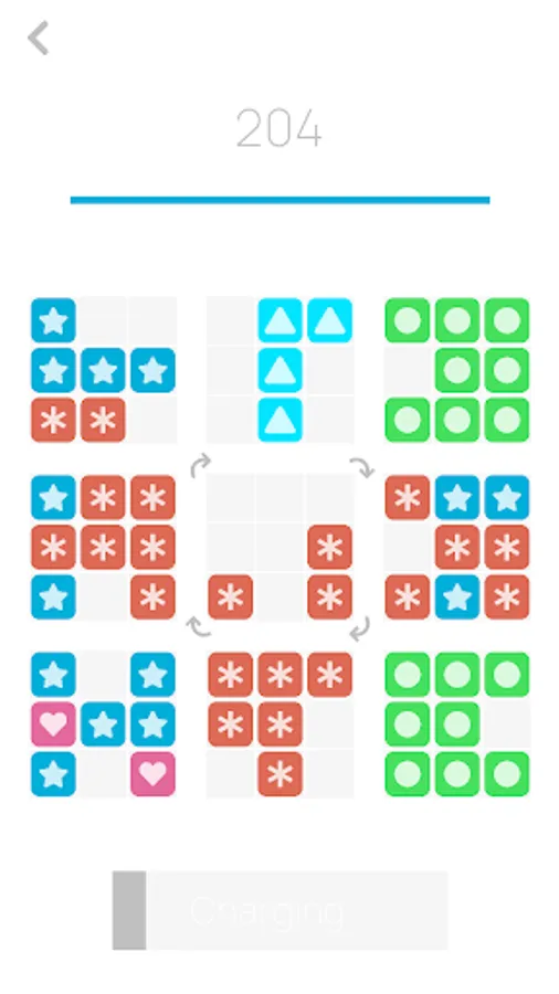 Colorful squares will appear on the central board in various combinations. Find where they fit on any of the side boards. Rotate the central board if necessary. Tap one of the side boards to transfer the squares. Try to fill each board with the squares of the same color for extra points.