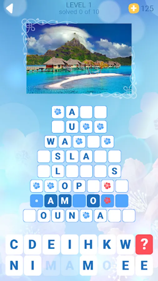 You need to find all the words in the list using the image as a clue. Tap the word and use some of the given letters to decipher the word. Also, some words have bonus tiles that will help you reveal letters in the other words of the puzzle. When all the words are found, the next level will be unlocked for more fun! Sit down with a nice sangria and your friends and try to find all the words while looking at amazing pictures!