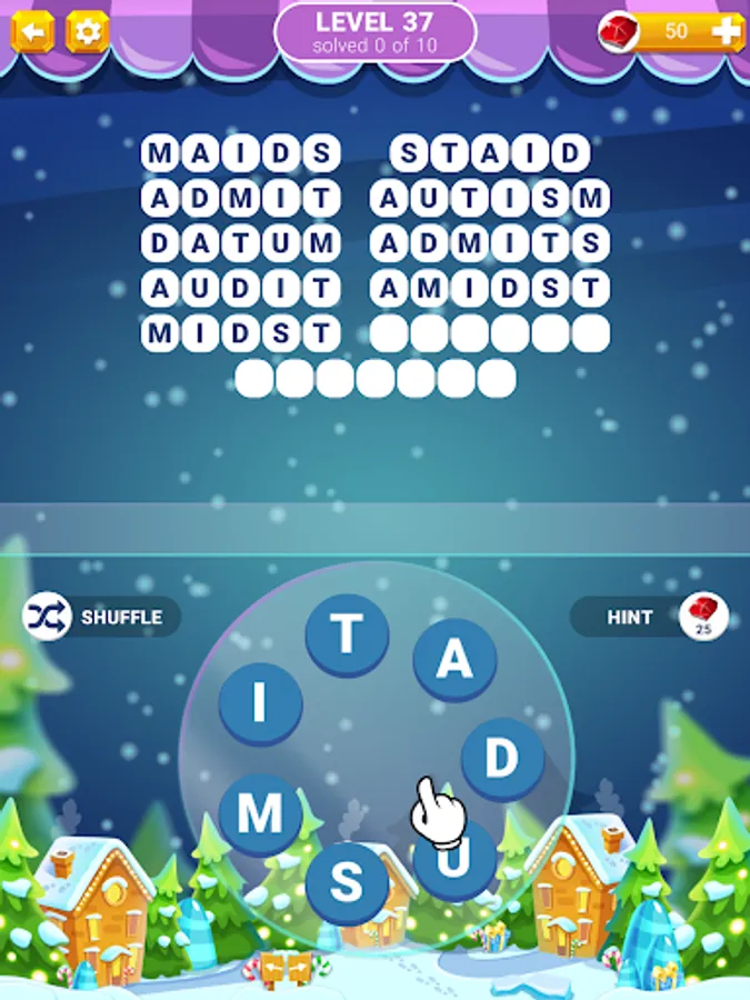 Put your mind at ease with this new set of familiar puzzles! Swipe your finger over the letters on the plate to form words. Find all words in the list to advance to the next puzzle. Additional hidden words will give you extra bonus.