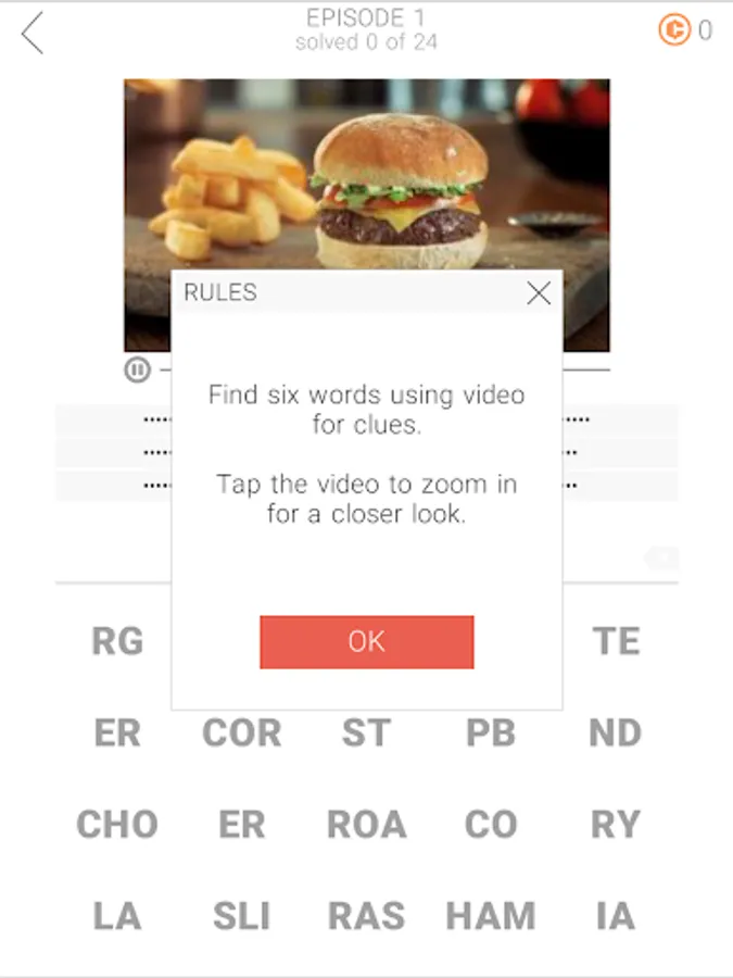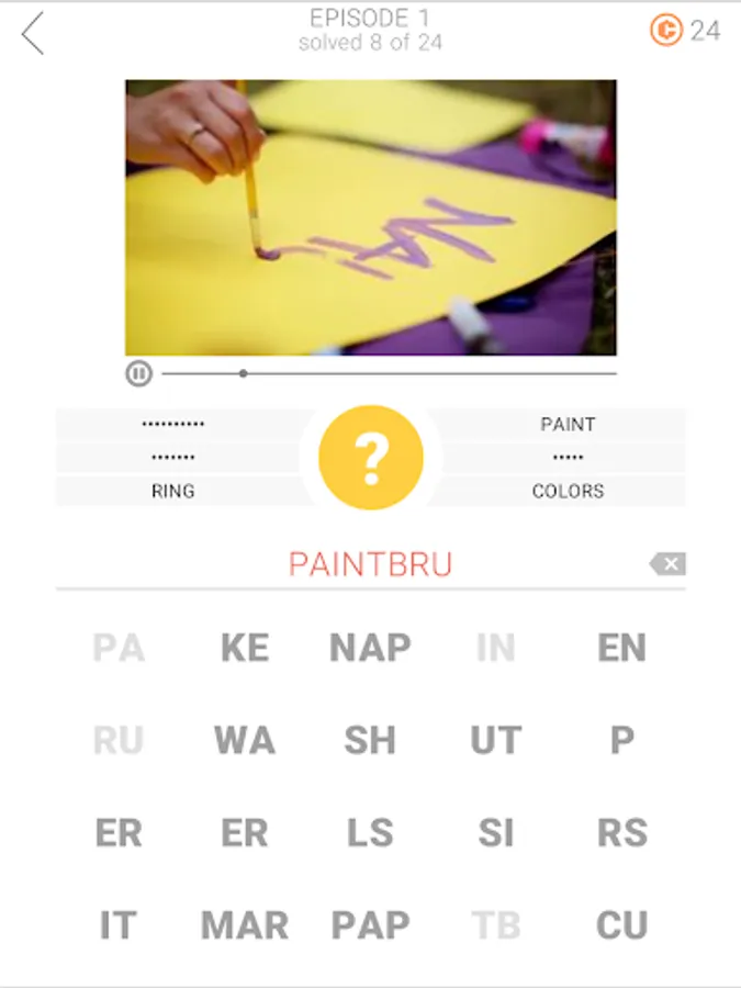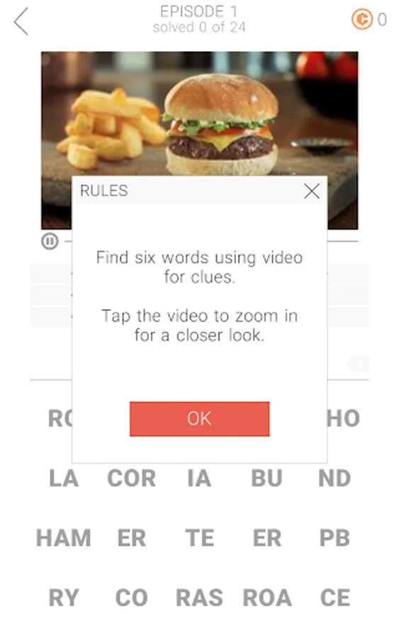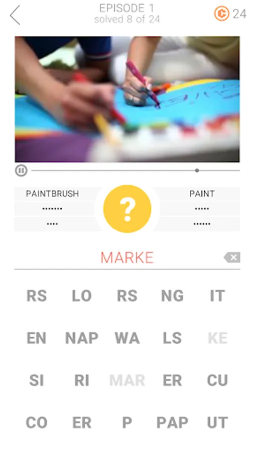 Put your observation skills to the test! This game will challenge you like never before. Watch a 5-second VIDEO and guess six words. You can pause the video at any time to look at the details. Tap the movie to switch to a full-screen view. Are you ready to watch and play?