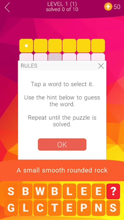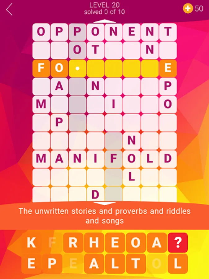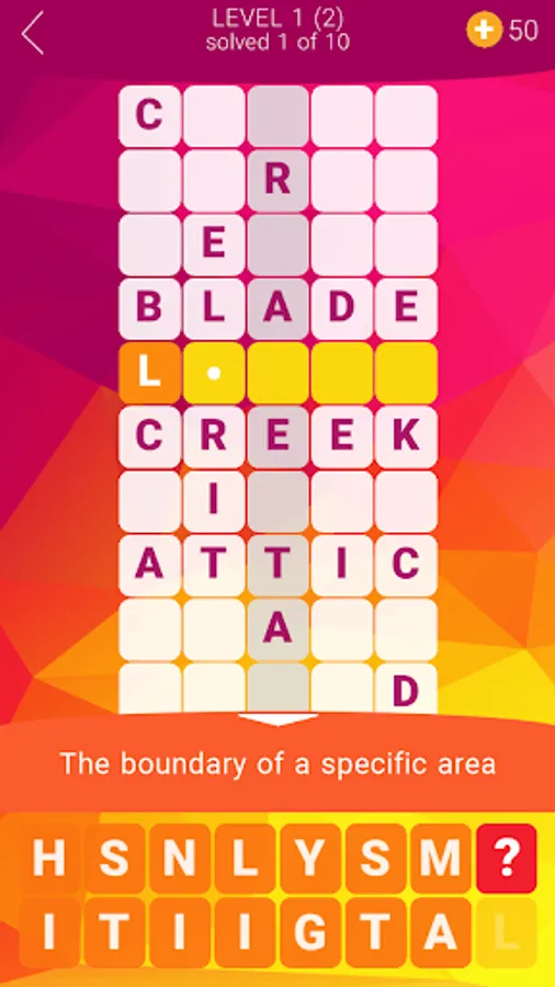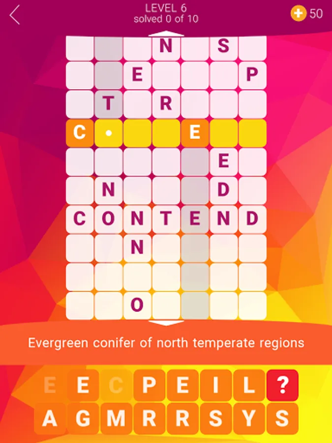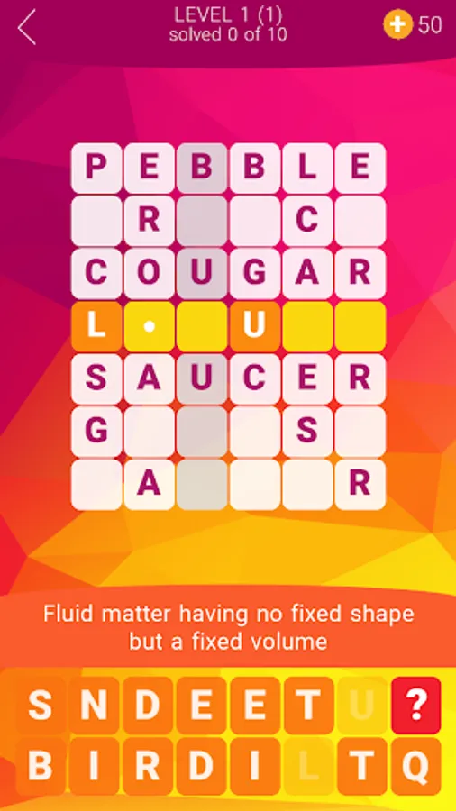 Refreshing crossword experience! Unlike in a typical crossword, words here are stacked on top of each other. Try to guess all words and solve all levels! Some answers are straightforward, some are quite tricky. This crossword game is an excellent workout for your brain cells!