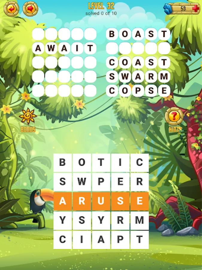 Put your mind at ease with these new word puzzles! Align the letters to form words. Find all words in the list to advance to the next puzzle. Additional bonus words will give you extra gems.