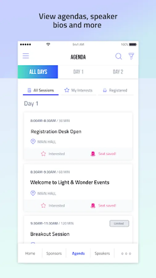 Agenda – Access your complete event schedule, speakers, sessions, bios, and more.