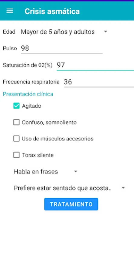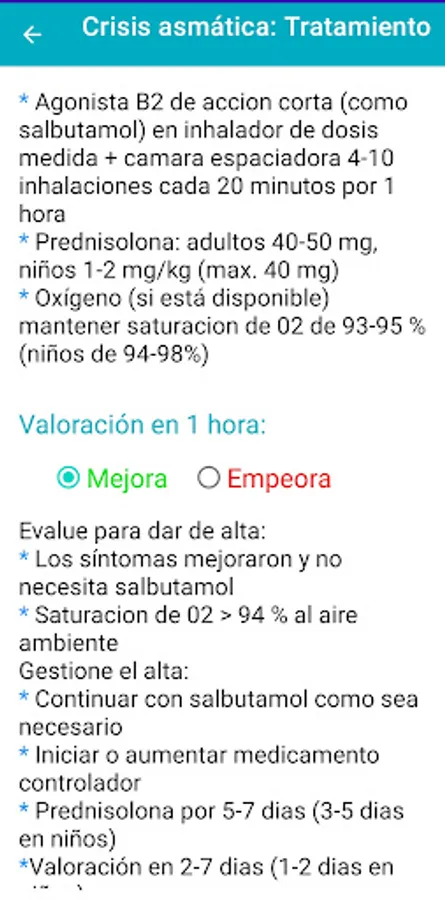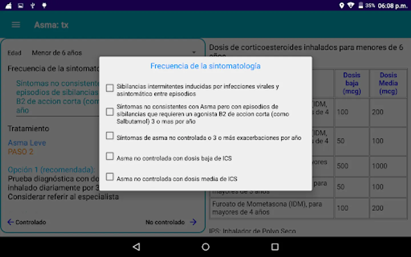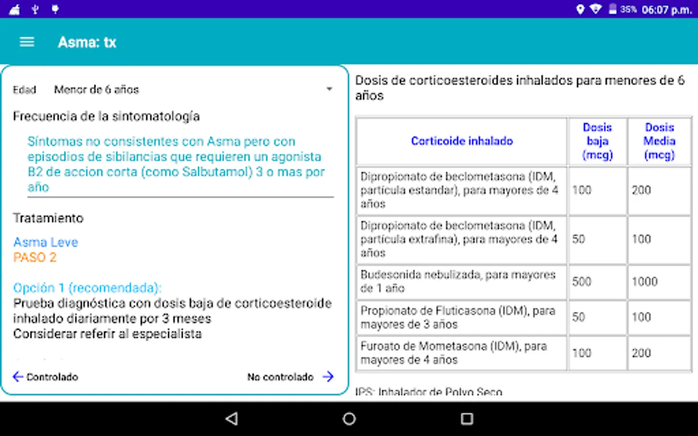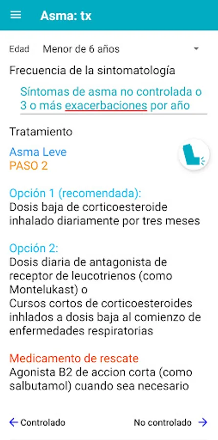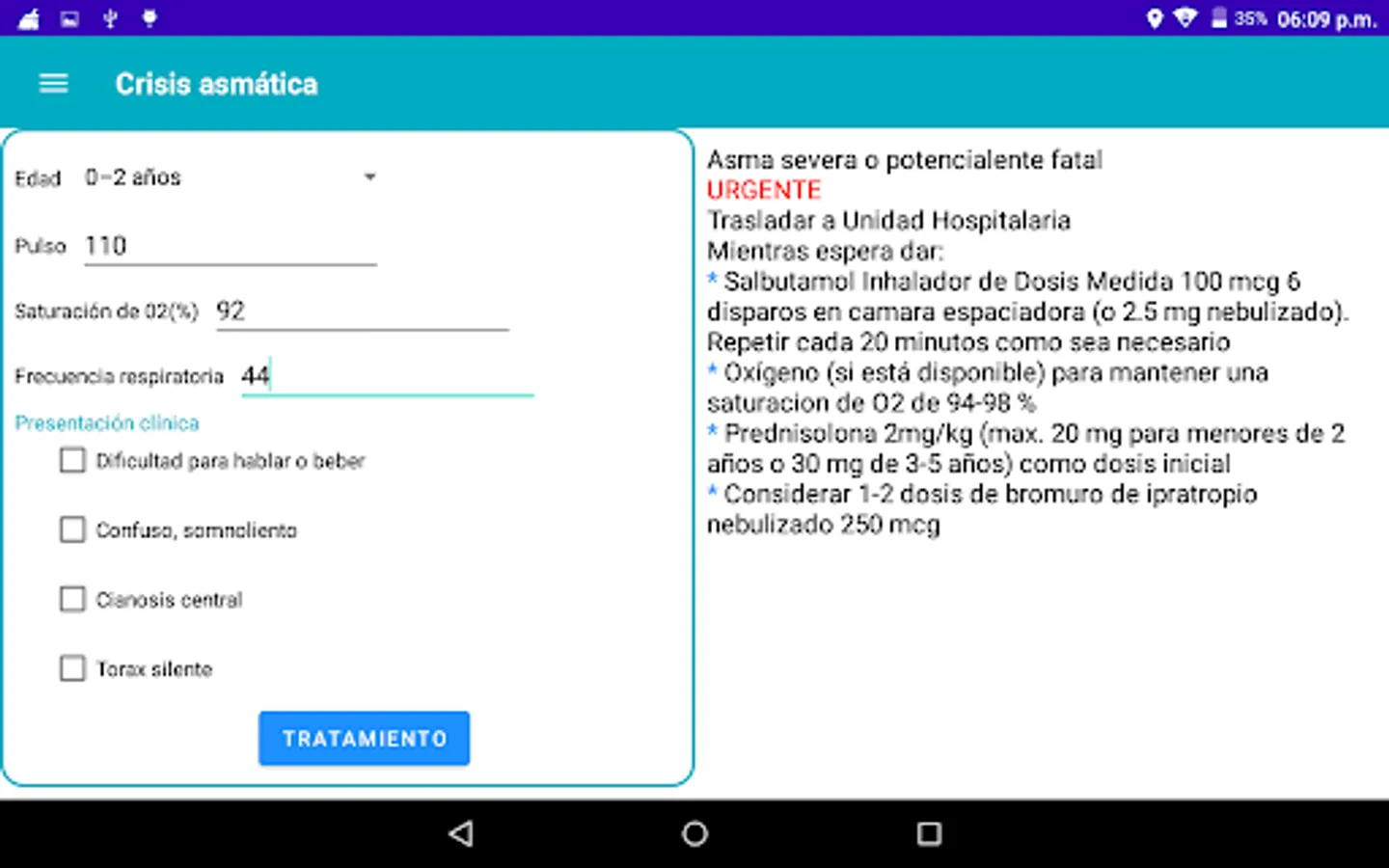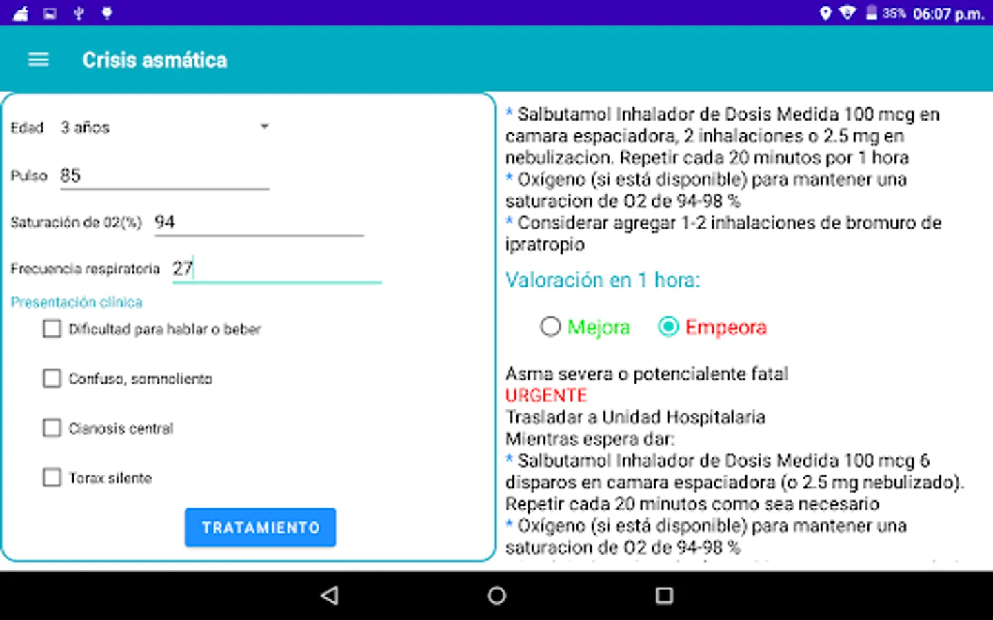 Asthma-treatment allows the health professional to give an adequate treatment to the patient already diagnosed with asthma according to the degree of lack of asthma control, it also allows the management of asthmatic crises according to the patient's age