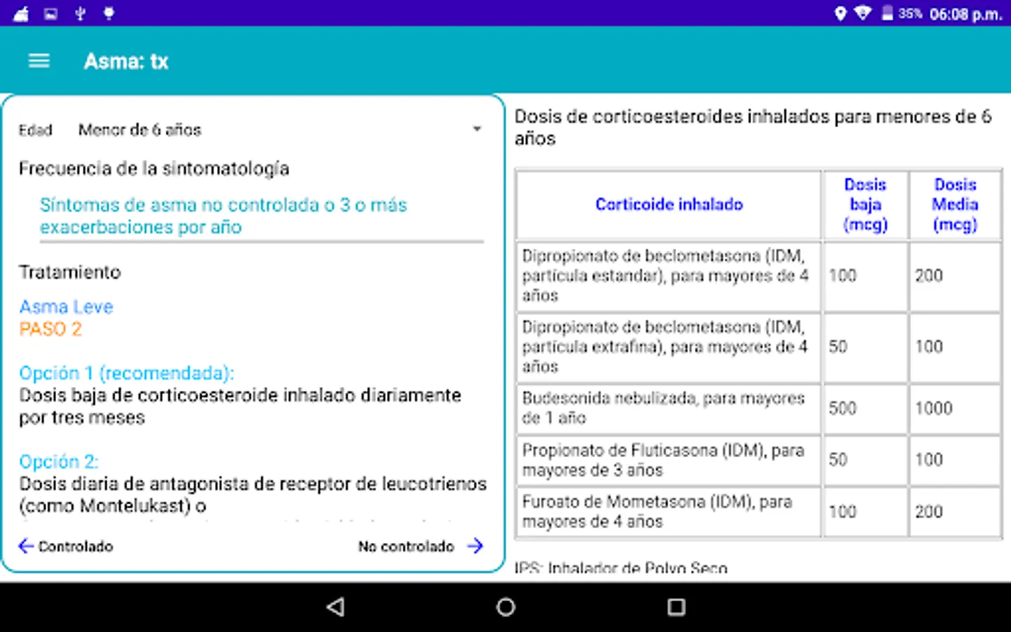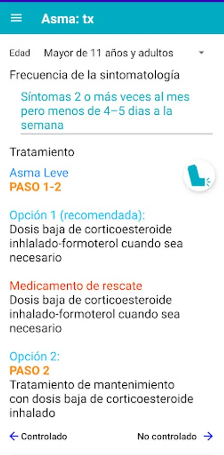 This application is based on the GINA 2021 guidelines (Global Initiative for Asthma) which are one of the most used guides worldwide and have continuous updates