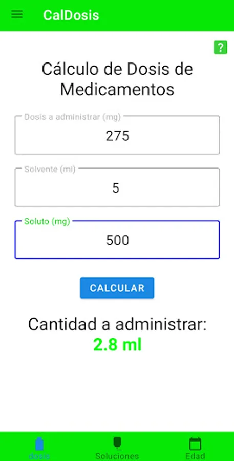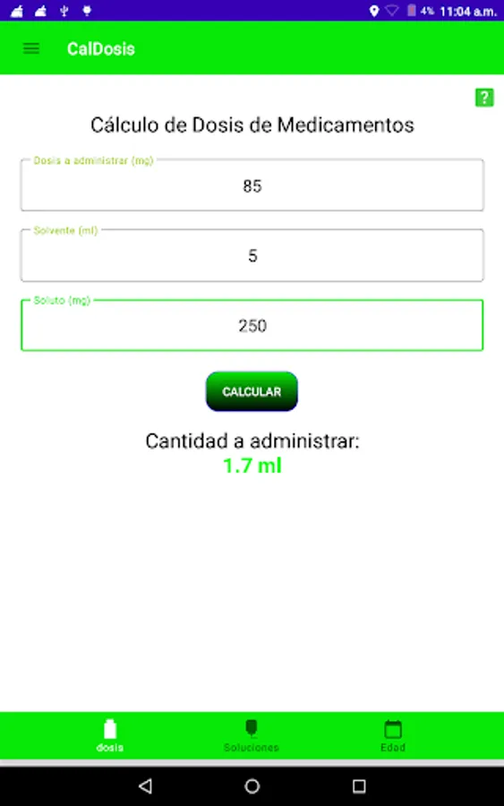 Support tool for health personnel that allows the calculation of the exact amount of medication to be administered.