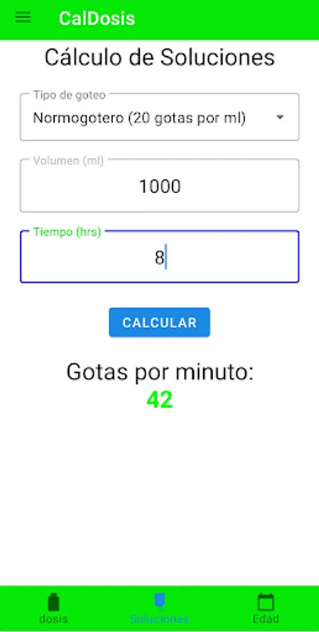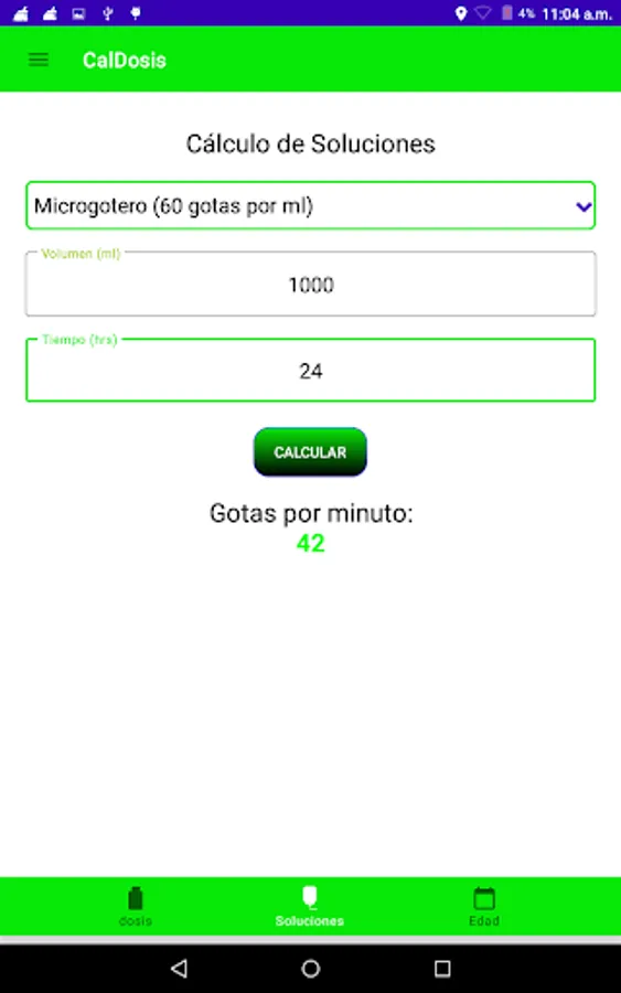 It also allows calculating the drip rate for the passage of parenteral solutions for a certain amount of time.