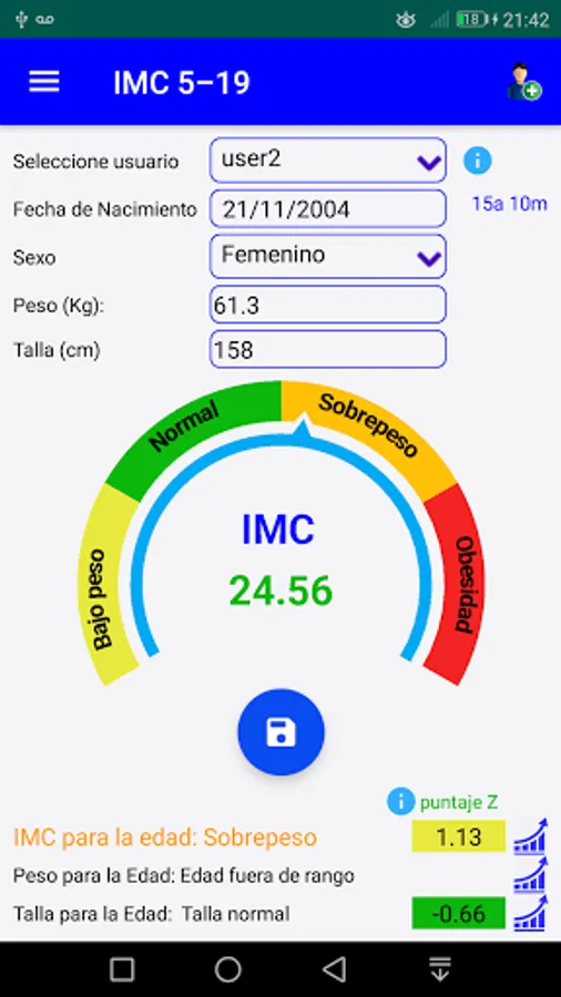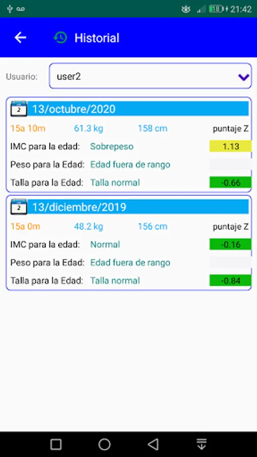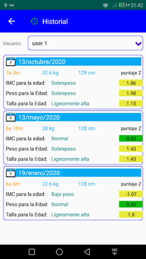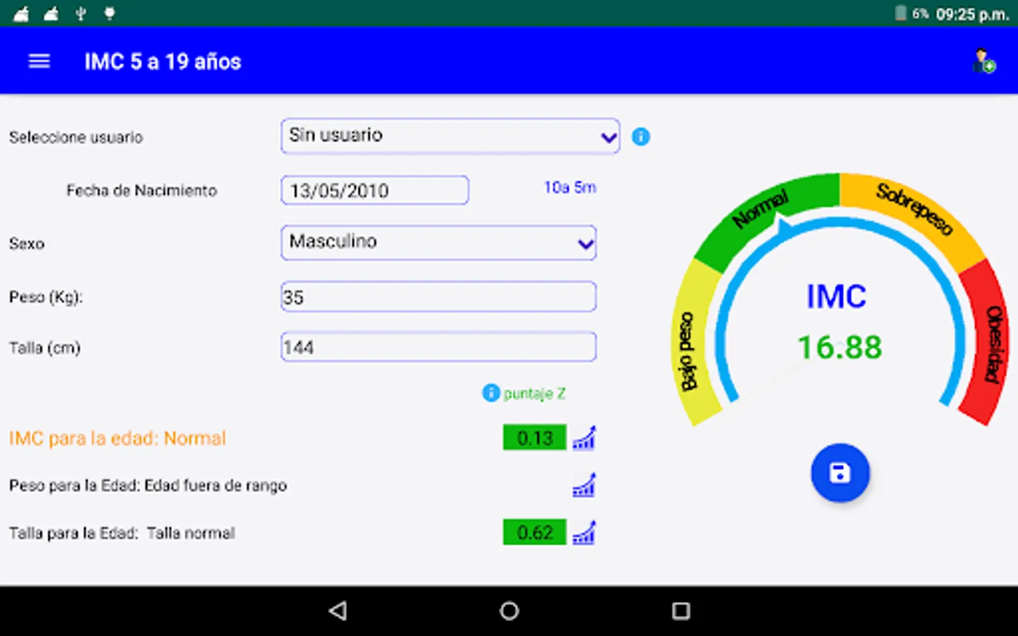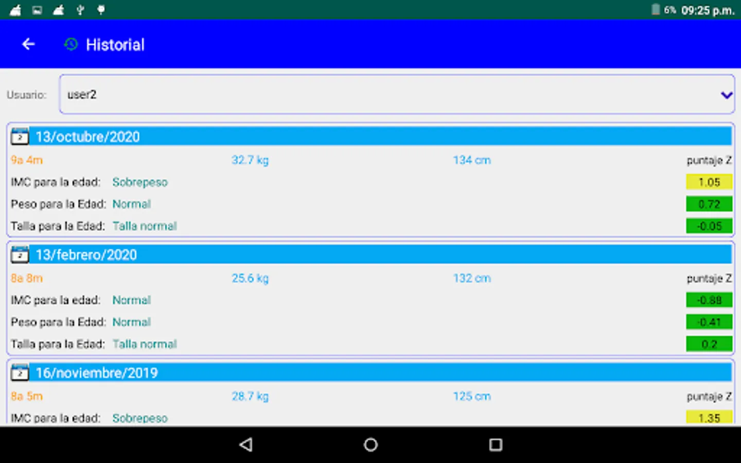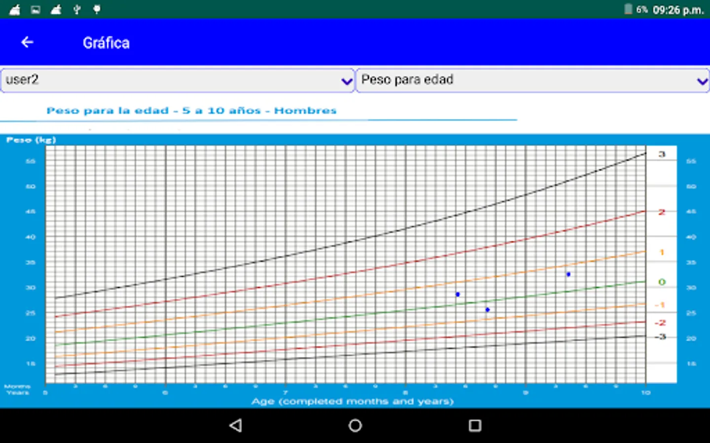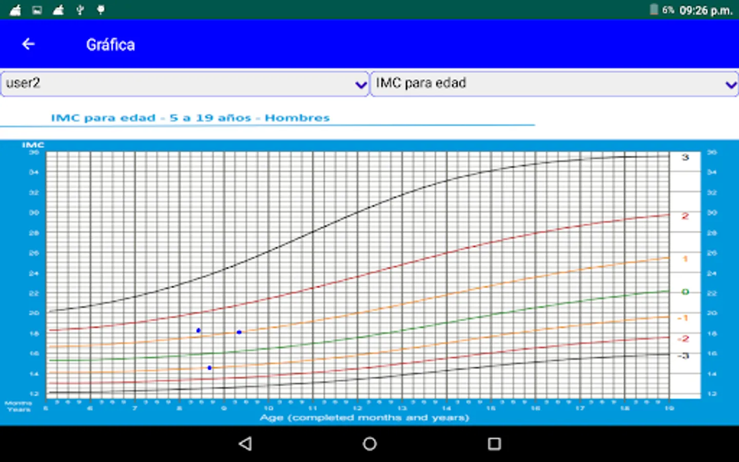 Application that allows to assess the development and growth of children and adolescents 5-19 years of age in an easy and fast way, based on the WHO growth patterns based on Weight for age, Height for age and BMI for age