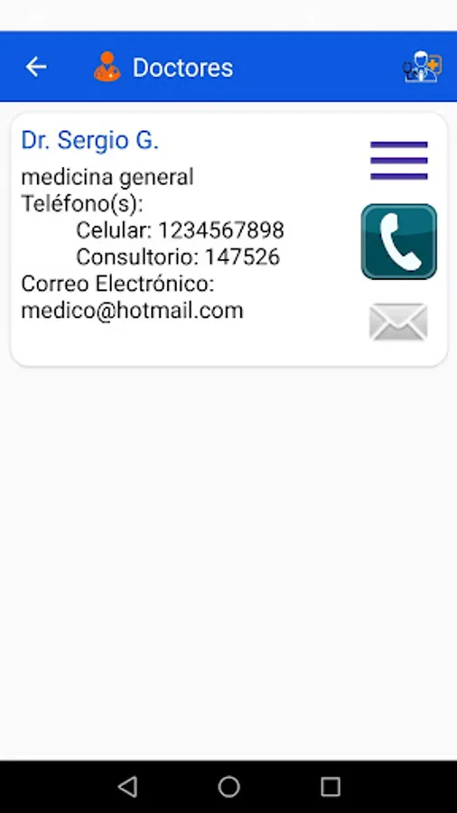 On the other hand it will allow you to save the data of your treating doctor as well as the option to call directly from the application
