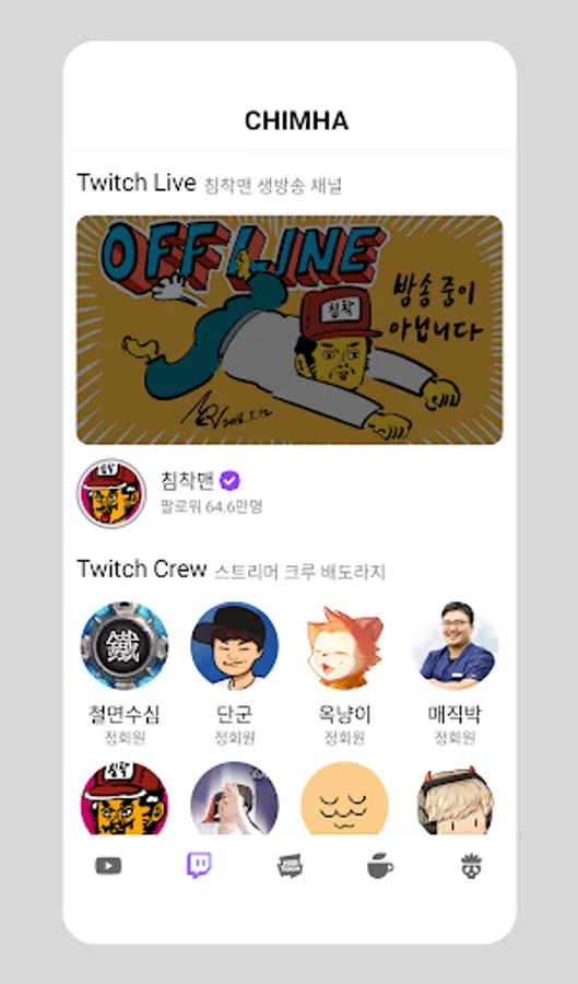 • You can check whether Calm Man is currently broadcasting, and you can check the status of Bae Doraji crew members.
