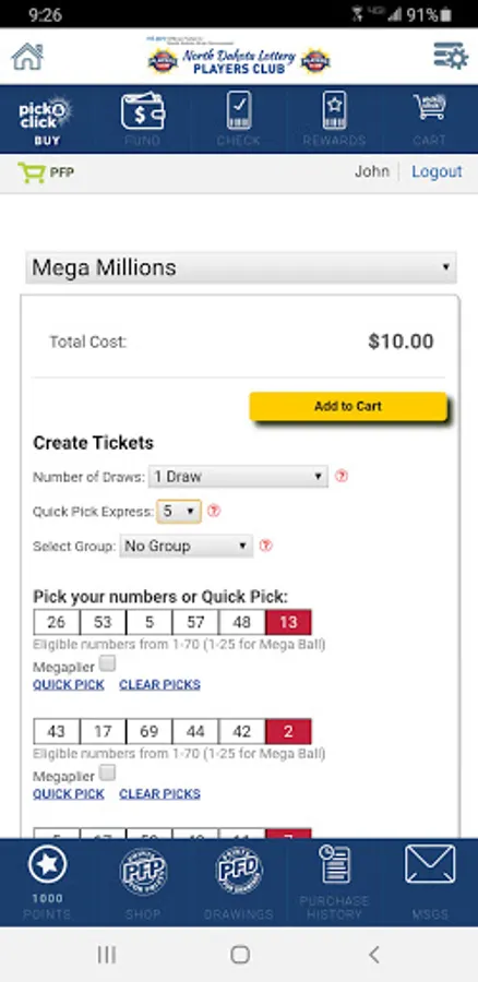 The ND Lottery Players Club mobile app also allows you to:
