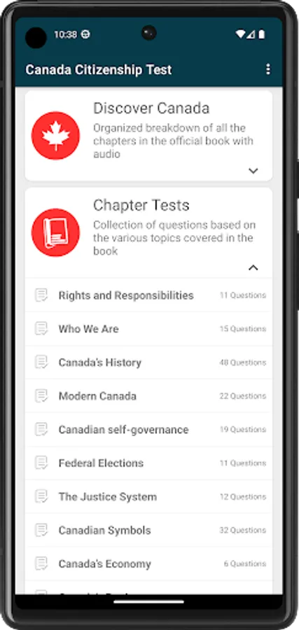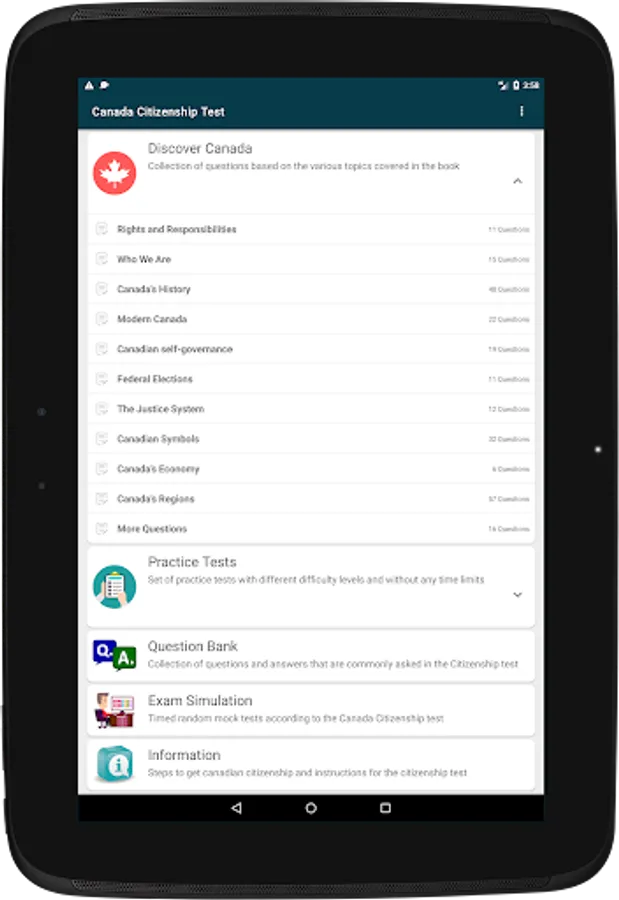 The information in this app is not affiliated with or endorsed by the creators or administrators of the Canada citizenship test.