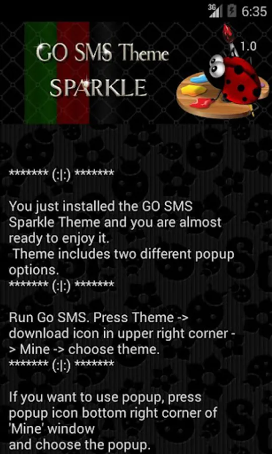 You just installed the GO SMS Sparkle Theme and you are almost ready to