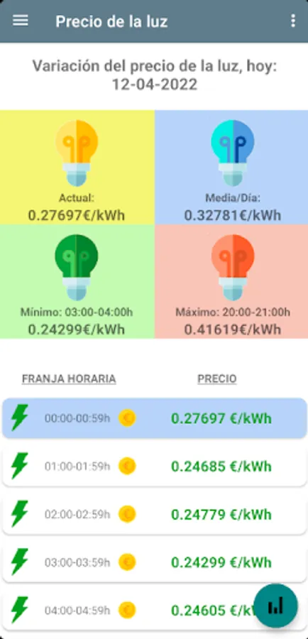 Observe the graph where it will allow you to appreciate more clearly the variations of the price/hour.