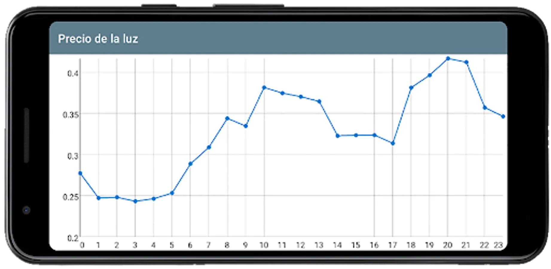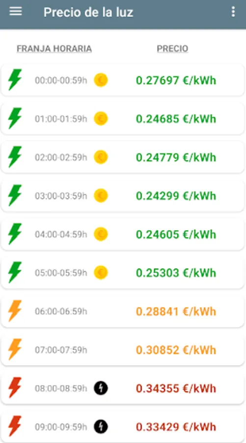 The price of electricity fluctuates every hour. With the 'Price of electricity' app you can check these price variations in real time.