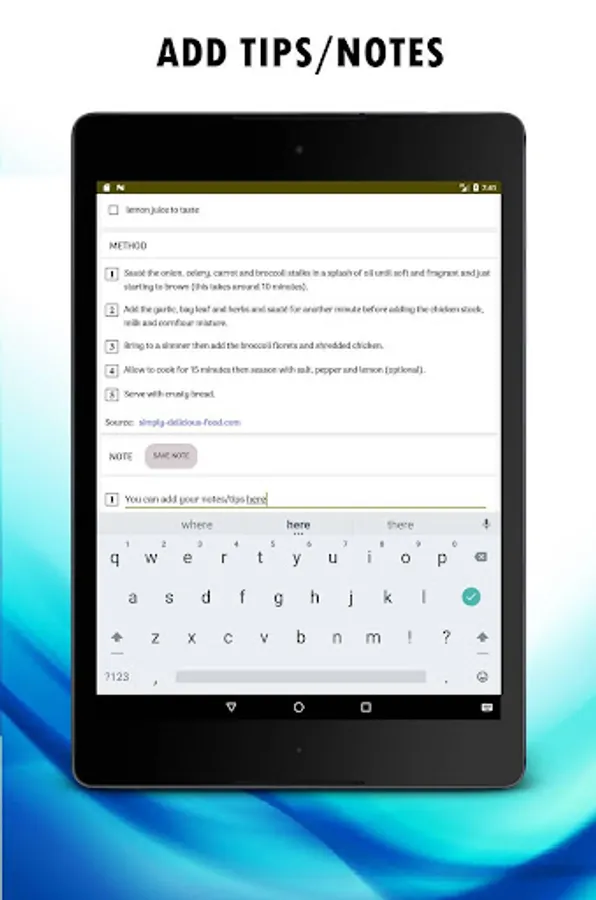 ЁЯМЯ Notes: - You can add your notes to each of the recipes for your future reference. ЁЯУЭ