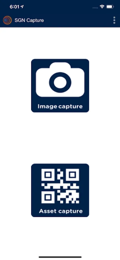 The SGN Capture App is determined to capture photos (Image Capture) and record asset details by scanning bar codes or QR codes with associated photos (Asset Capture).