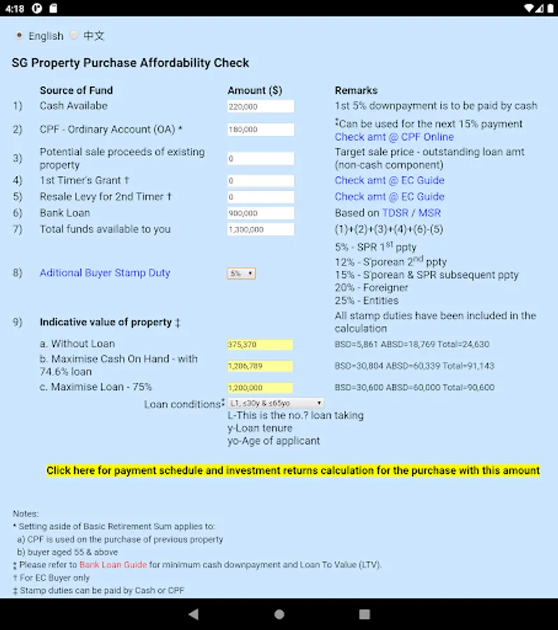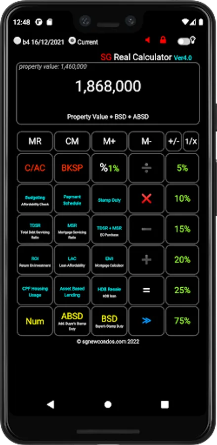 The SgRealCalc is simply a launchpad to all our property calculators. You can use it to do quick calculations related to your property purchase.