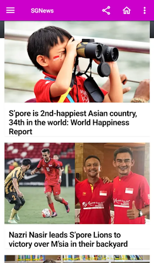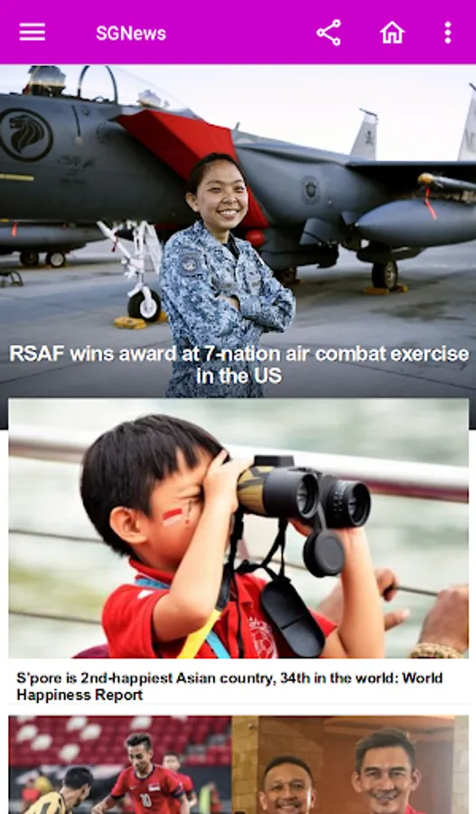 Keep up to date with all the latest and breaking news in Singapore. Install SGNews and open the news app whenever you want to know what is happening in Singapore.
