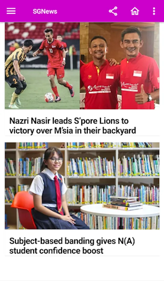 The SGNews app also includes Asia news, South East Asia news and World news.