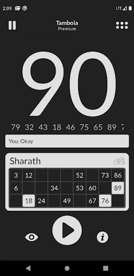 Makes host life easier as app checks 46 winning patterns (i.e, first line, corner, safe, fence, queen corner, king corner, etc) in all tickets.