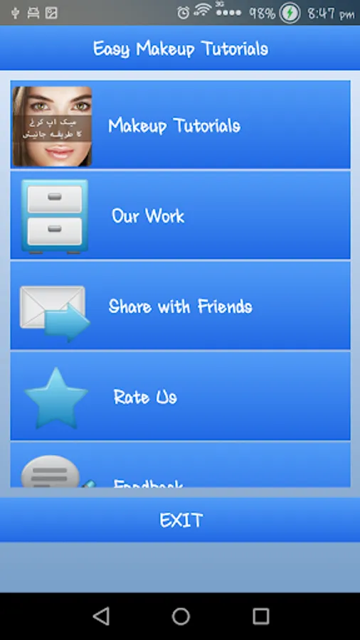 Easy Makeup Tutorial & Tips is an amazing, simple and light weight app. Makeup tips based on easy and step by step makeup tutorials, so with these tutorials you can learn new face makeup, eye makeup trends. Get the latest makeup tutorials with this Easy Makeup Tutorials & Tips.