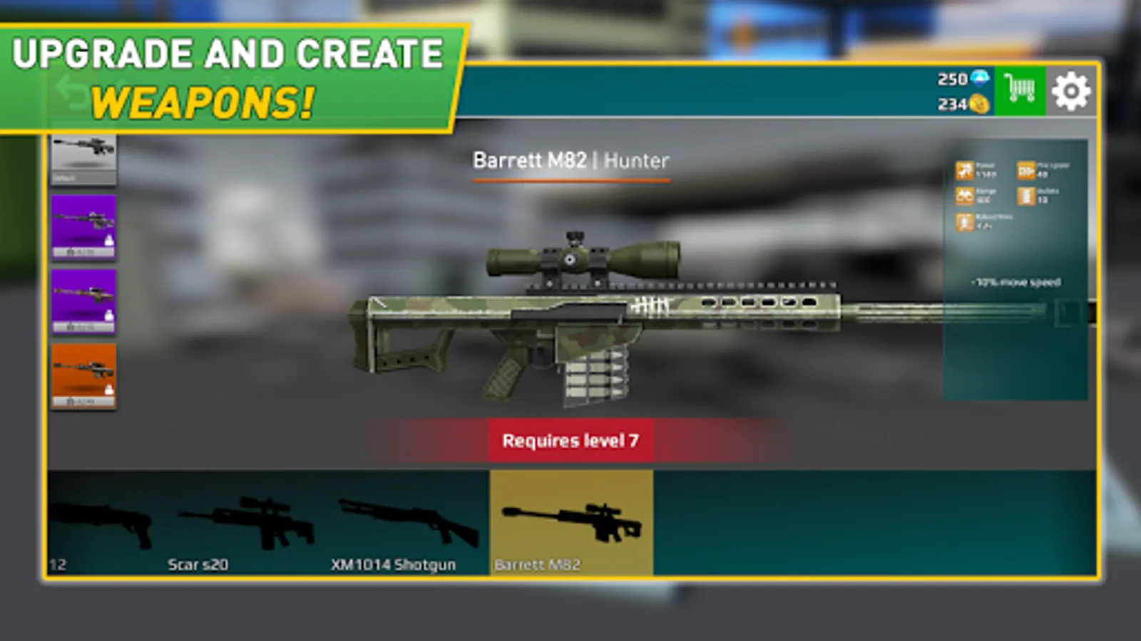Now you can use realistic weapons in pixel world! Play a fascinating dynamic first-person shooter online with friends and other players online. Gather with friends in your team, create a clan and win together in dynamic battles.