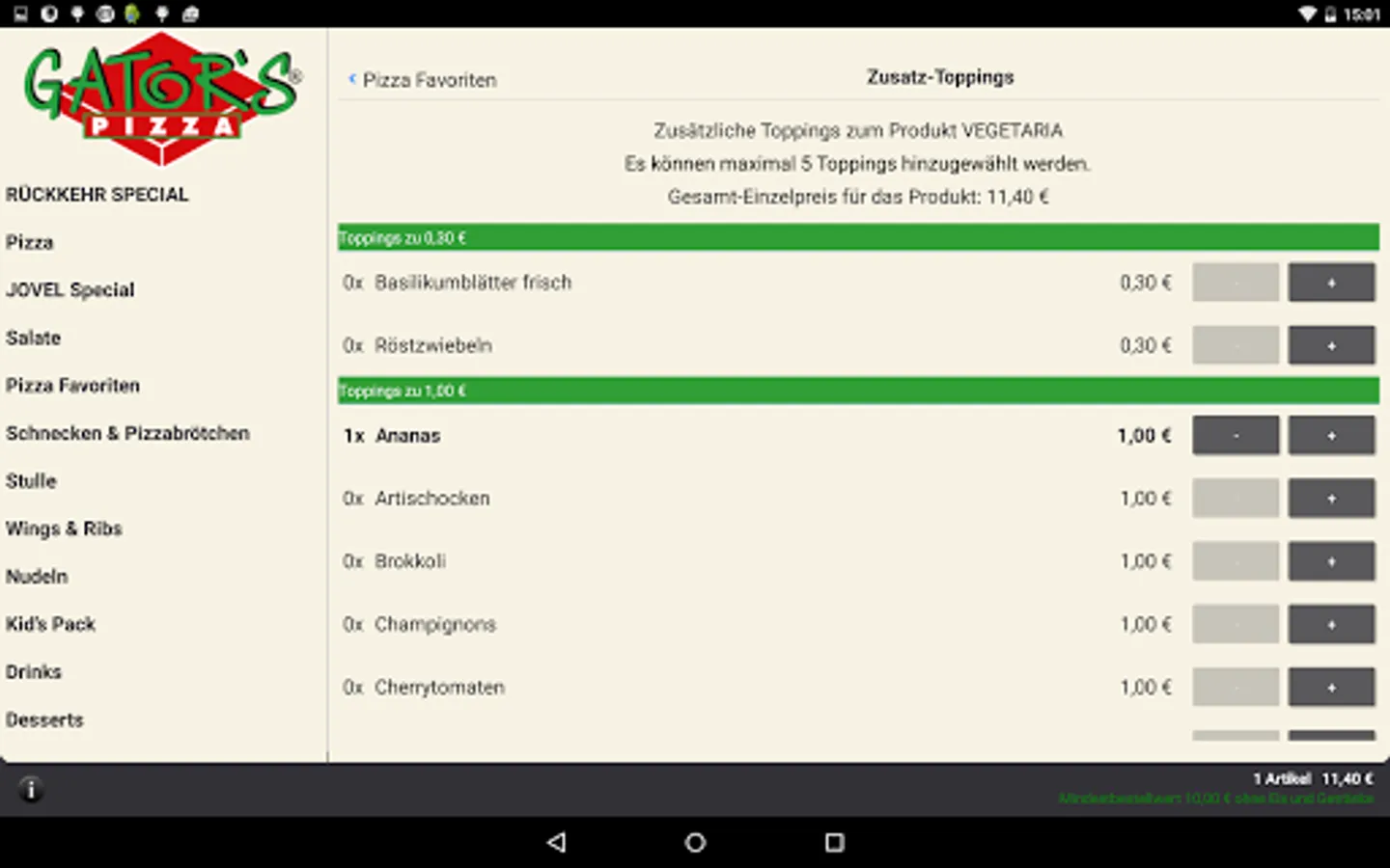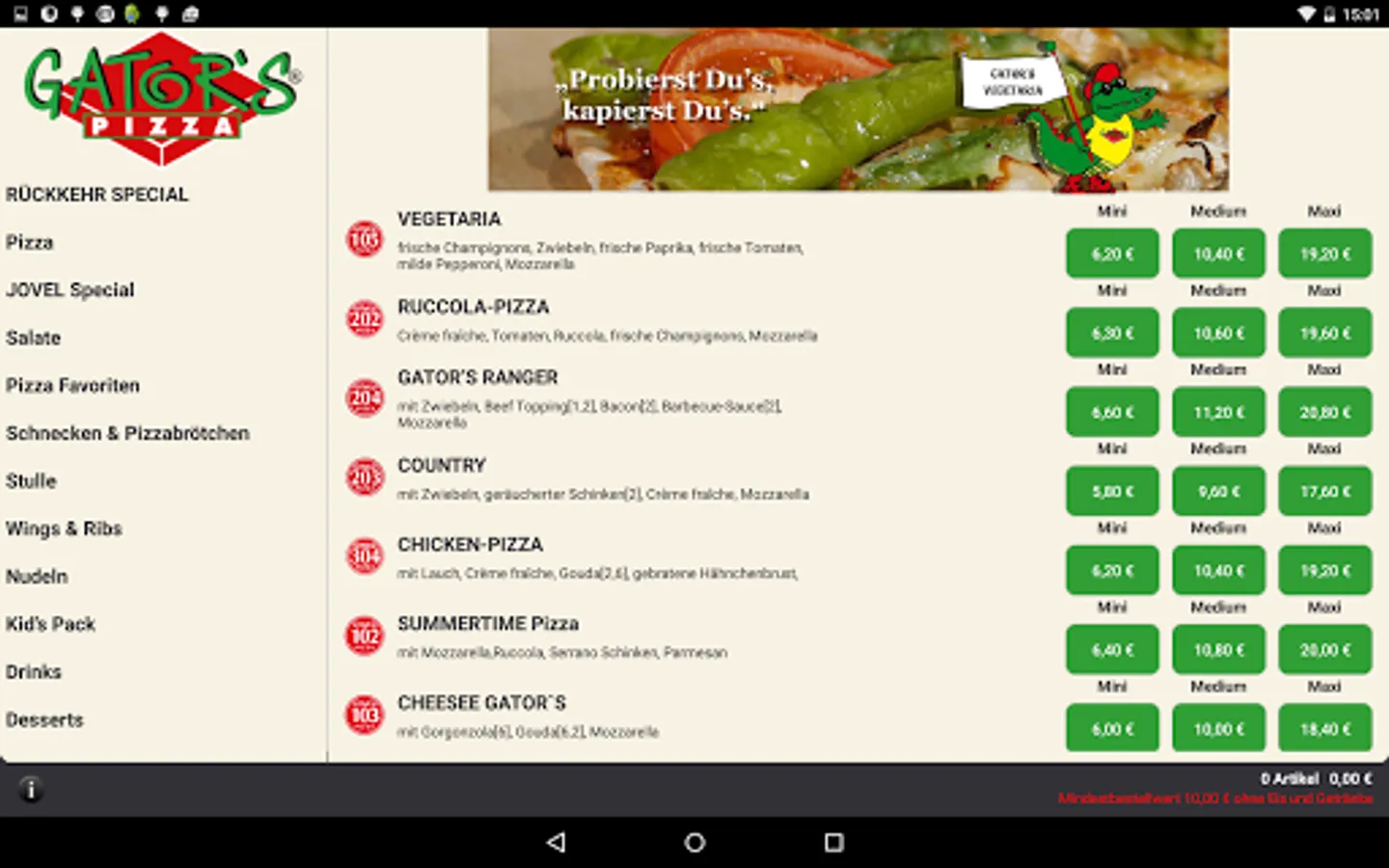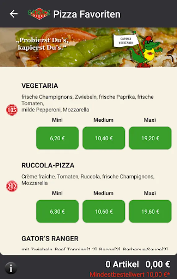 Dear GATOR`S FAN with GATOR`S app you can order at any time, or pre-order.