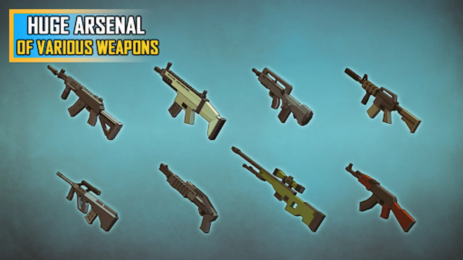 - Huge arsenal of various pixel weapons!