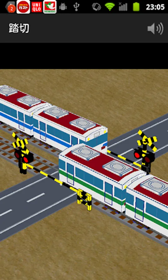 TrainCrossing shows trains passing through a crossing. TrainCrossing rings crossing alarm. For muting, touch speaker icon at the right top. Enjoy!