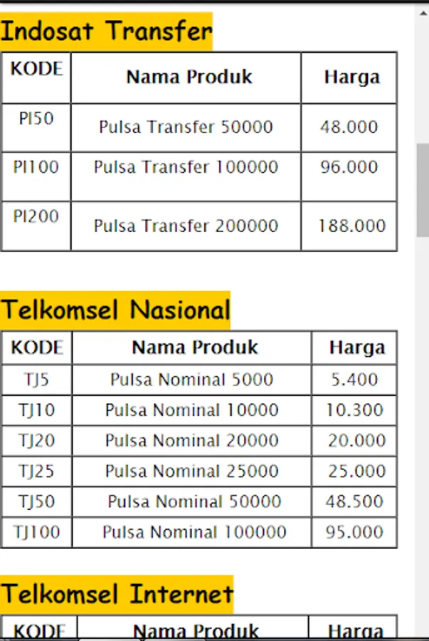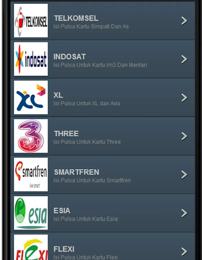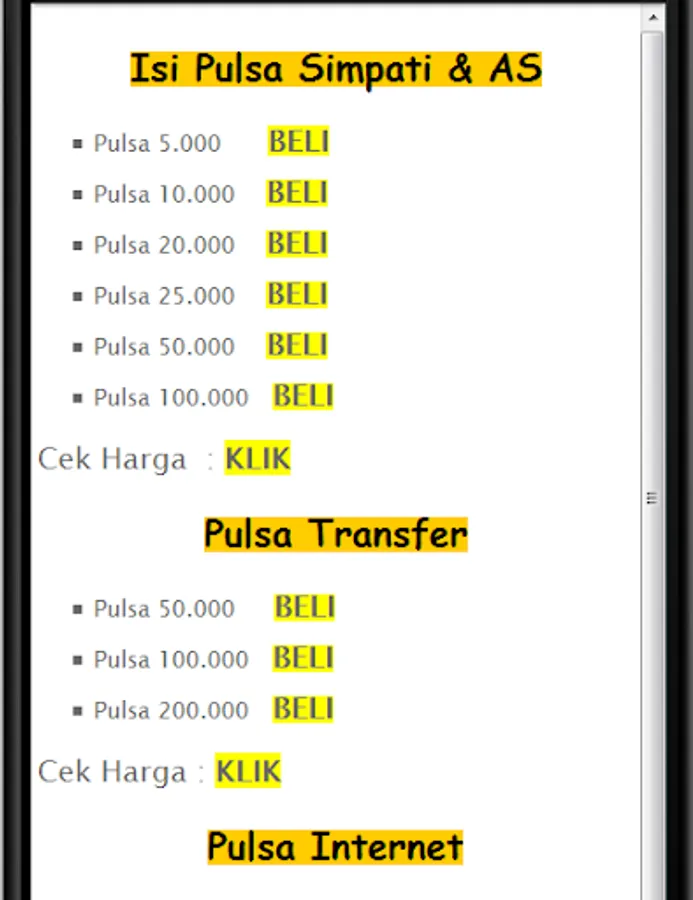 - Isi Pulsa , Disini anda dapat melakukan isi ulang pulsa secara langsung, seperti isi ulang pulsa Telkomsel, Xl, Indosat, Flexi, Smartfren, Three, Esia dan lain-lain.