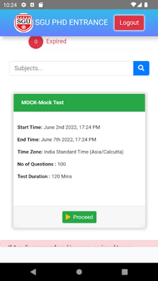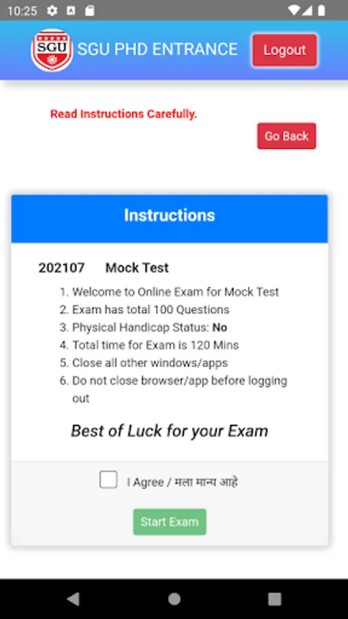 2. The duration for the examination is two hour .The countdown timer for the end of examination starts when the examinee clicks on the “Start Exam” option.