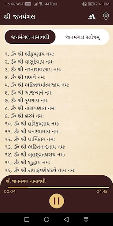 This App Contains the List of 108 god Names, called Janmangal Namavali.